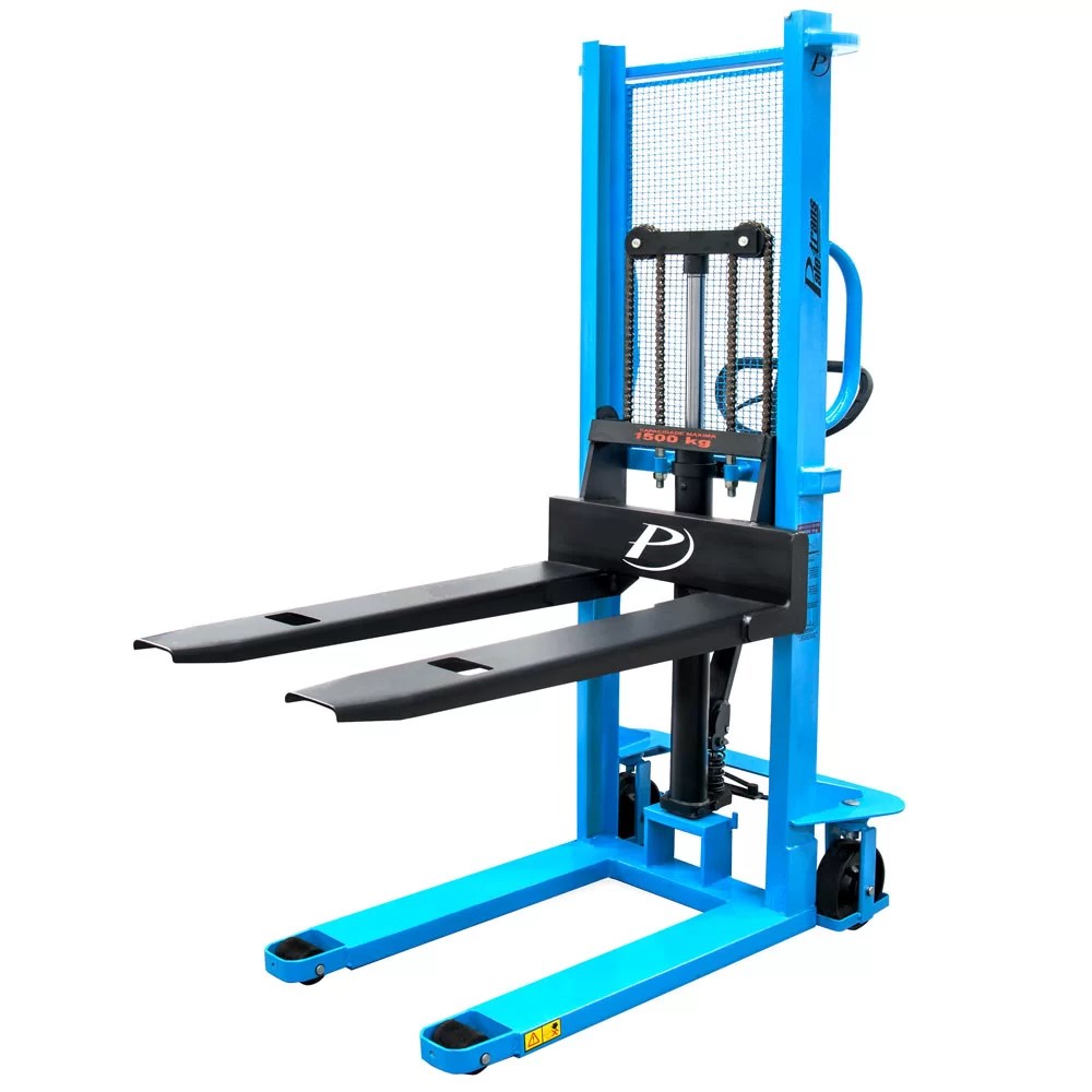 A empilhadeira manual LM1516 opera exclusivamente em paletes abertos. É ideal para descarga leve de pick-ups e caminhões.