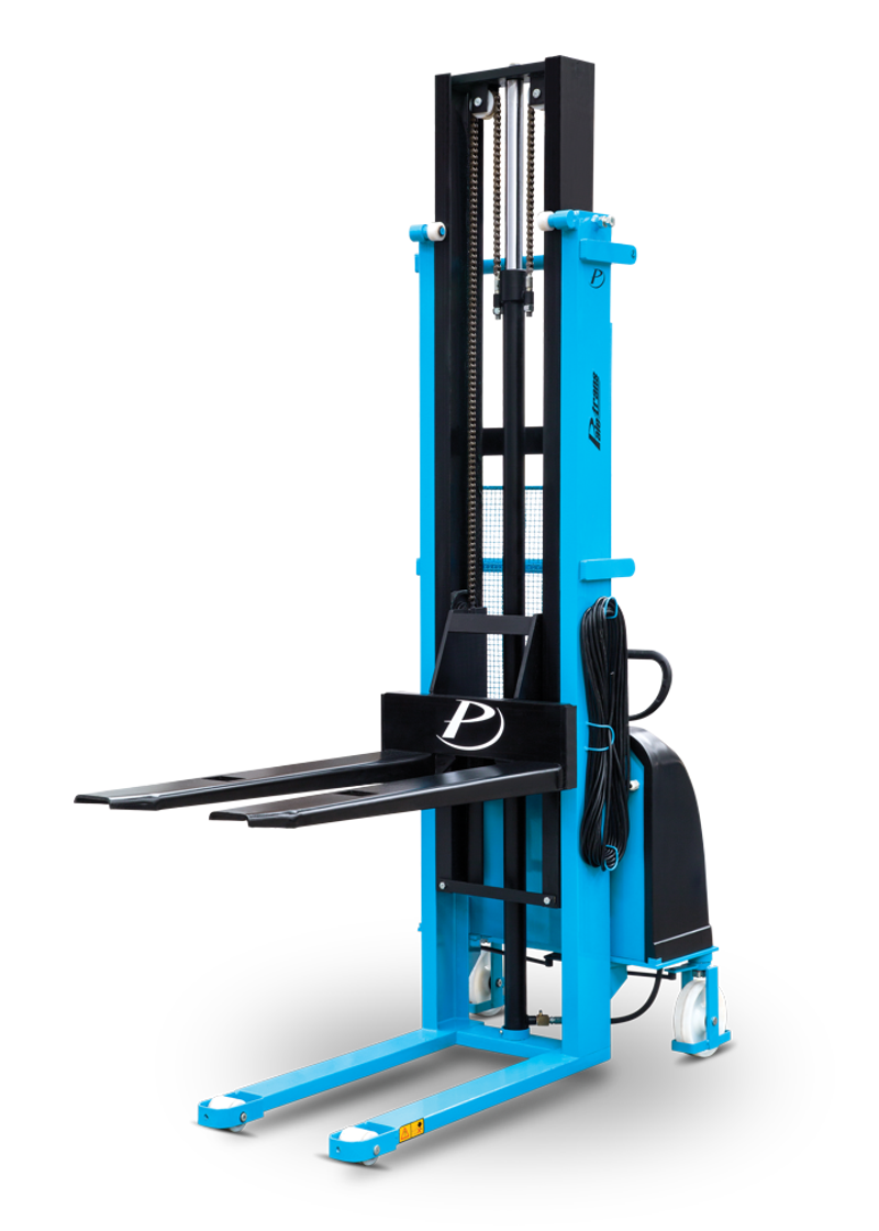 A empilhadeira semi elétrica LE1034C tem tração manual e elevação por acionamento elétrico. Por ser patolada opera exclusivamente em paletes abertos e é ideal para descarga leve de caminhões e camionetes.