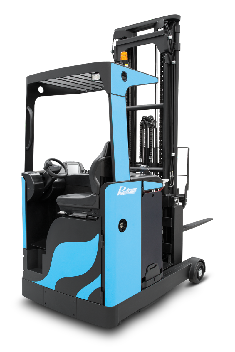 As empilhadeiras retráteis Paletrans são fabricadas com os melhores componentes do mundo. Têm controladores, motores de tração e elevação reconhecidos internacionalmente. São equipadas com display digital, emitem alertas de manutenção preventiva e podem vir com câmera para visualização da imagem no garfo.